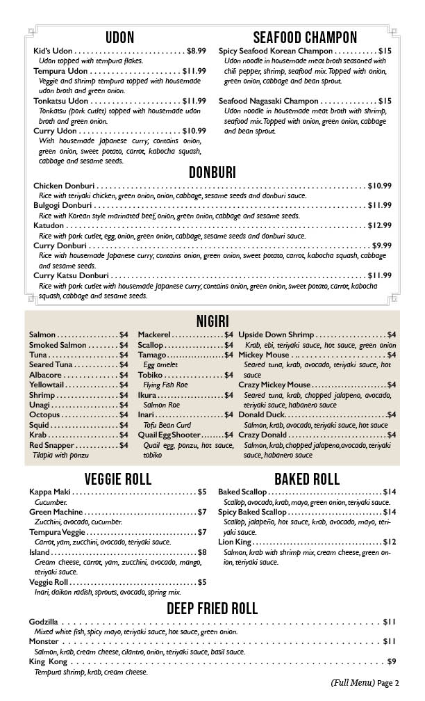 Minato Sushi & Bar Menu