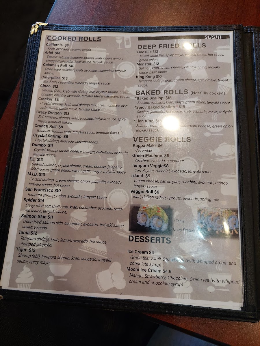 [Spicy] Crystal shrimp, cream cheese, avocado, jalapeño, onion, teriyaki sauce, hot sauce.